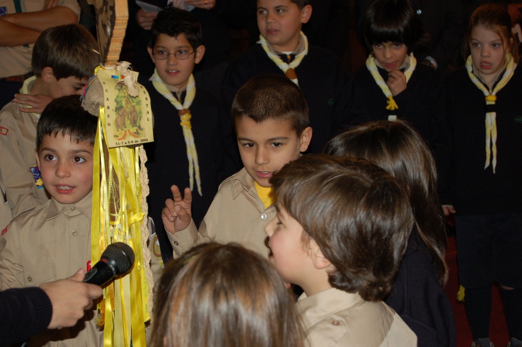 Assistente: Recebe este lenço, da cor do sol dourado, símbolo de Jesus Cristo nosso Amigo que nos ilumina e nos ajuda a crescer. Lembra-te sempre d’Ele e daquilo que prometeste, sendo fiel à boa acção de cada dia.