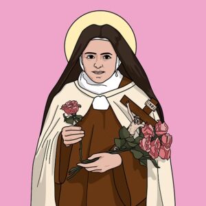 S. Teresa de Lisieux, ou S. Teresinha do Menino Jesus, nasceu em Alençon, França, em 1873 e faleceu em Lisieux, vítima de tuberculose, a 1 de Outubro de 1897. Teresa entrou para o convento carmelita de Lisieux, na Normandia, em 1888, onde já duas das suas irmãs se encontravam (sendo outras duas eram igualmente freiras). Tendo vivido muito poucos anos, S. Teresinha esforçou-se sempre por agradar e amar a Deus. A edição das suas memórias de infância, com alguns acrescentos da vida adulta («História de uma Alma»), produziu um enorme impacto na Igreja espalhada por todo o mundo, tendo tornado S. Teresinha numa das santas mais populares da época moderna, e padroeira das missões.