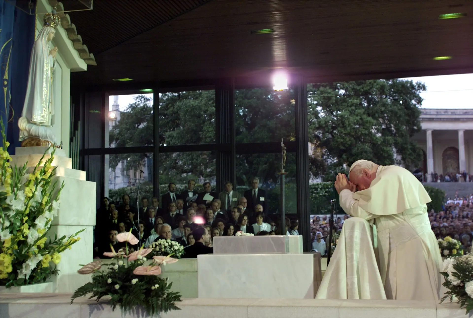 João Paulo II sofreu um grave atentado na Praça São Pedro, em 13 de maio de 1981: ao passar, com seu jipinho entre a multidão, foi ferido com um tiro. Depois de uma longa hospitalização, visitou o terrorista na penitenciária, o turco Ali Agca, que o perdoou e manteve uma longa conversa. Em sinal de agradecimento à Mãe de Deus, que o salvou com a sua mão materna, o Papa pediu para colocar a bala, com a qual foi atingido, na coroa da estátua de Nossa Senhora de Fátima, uma vez que o atentado ocorreu no seu dia litúrgico. Ciente de ter renascido para uma nova vida, João Paulo II intensificou ainda mais seus compromissos pastorais, com generosidade heroica.